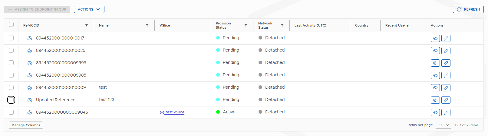 | View details | Click the view icon or the ICCID | Opens the full endpoint detail view |