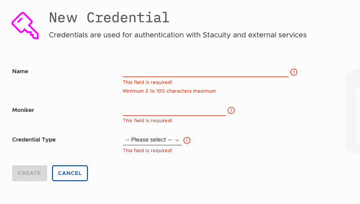 | Credential Type | Yes | Select the type of credential from the dropdown. |