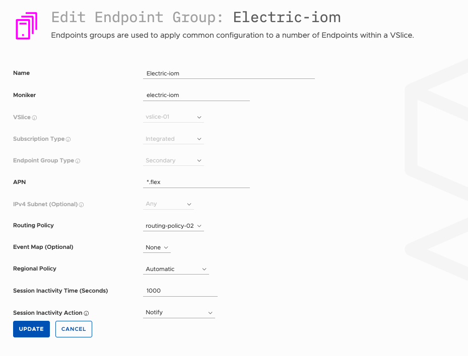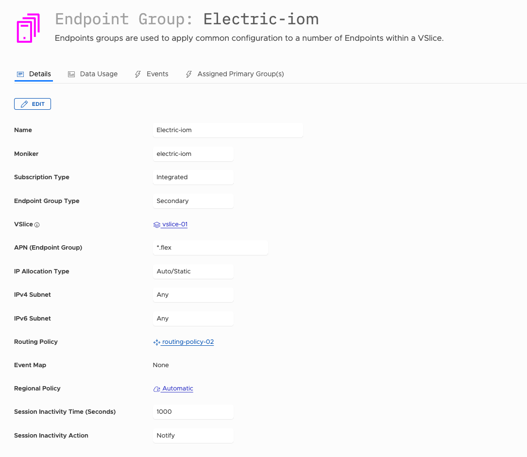 | Endpoint Group Type | Yes | No | Primary or Secondary. Determines whether the APN comes from the VSlice (Primary) or is set on the group (Secondary). |