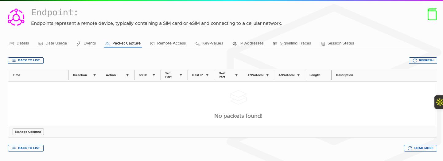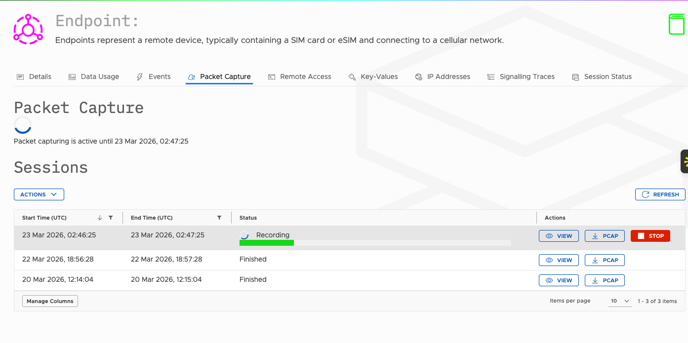 The Packet Capture tab allows you to capture and download network traffic for an endpoint