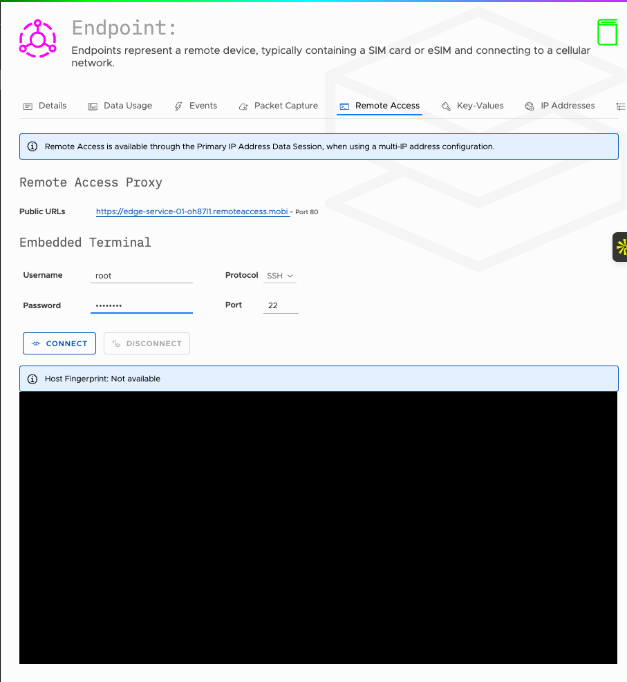 The Remote Access tab provides access to remote connectivity features for an endpoint