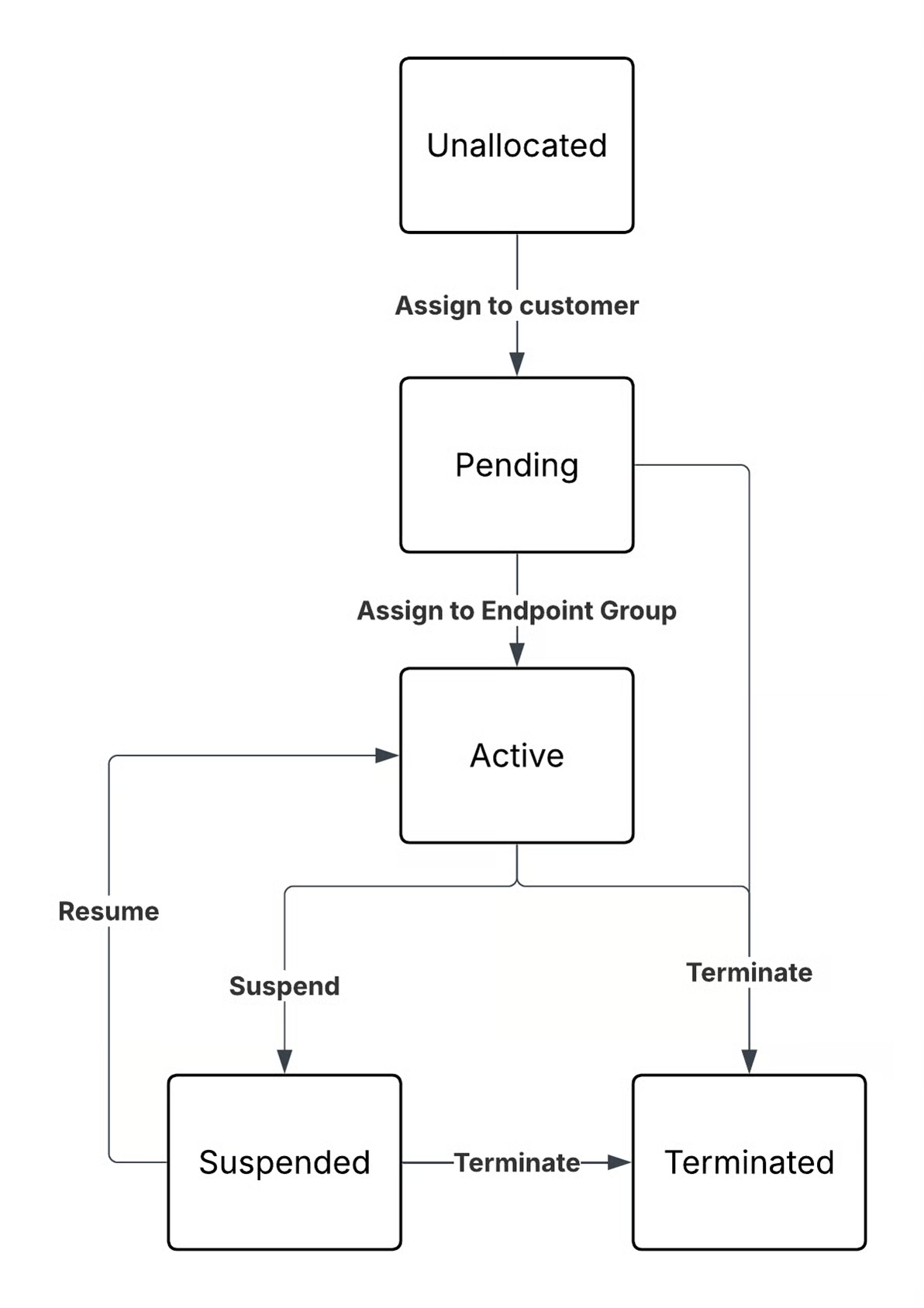 | Active | In a group, fully provisioned, able to pass data | Yes | Yes, suspend or terminate |