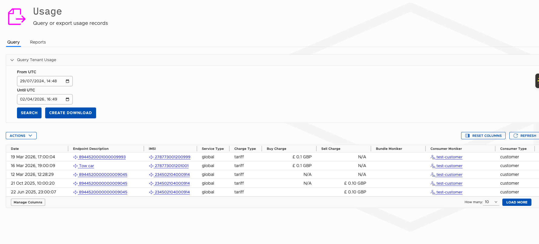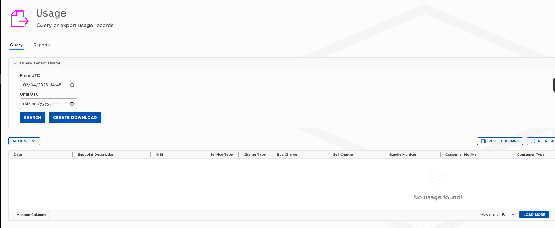 The Usage section allows you to query, review, and export usage records across your entire tenant.